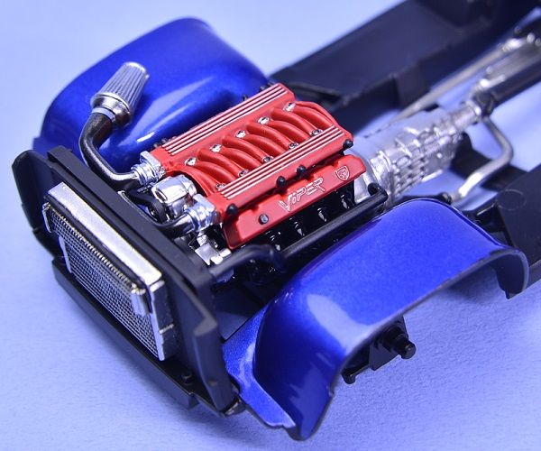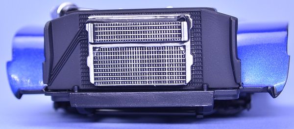 ラジエーターは塗装指示だと全身フラットブラックですが、せっかくフロントグリルを繰り抜いて内部を見えるようにしてあるので、中心をスターブライトジェラルミンで塗装して存在感を主張させます。